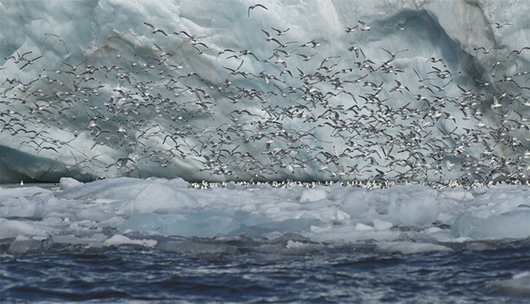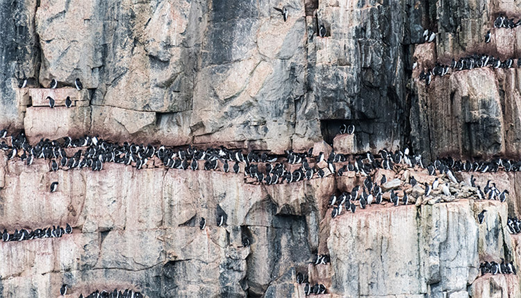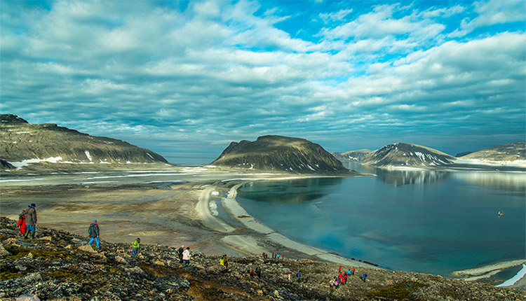 我们会在浮冰中穿梭,探索Alkefjellet峭壁上成千上万的海鸟。在辛罗森海峡的东部,我们将尝试在Palanderbukta登陆,这里是麋鹿、粉足雁、三指鸥和海象的家。
