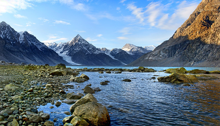 今天,我们会在【利物浦地赫里河口】登陆,沉浸于野花盛开的北极苔原美景。午后则将向南航行,途经风景如画的【布洛斯维尔海岸】,下午在约有500名居民、斯科斯比湾最大的聚居地【伊特奎特米特】登陆,可以到这里的邮局买邮票寄明信片,或者只是在村庄里漫步,看看雪橇狗、海豹和晒干的海豹皮、麝香牛皮。