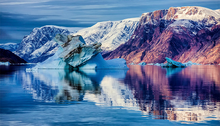 一早醒来,那格陵兰岛已近在眼前,随船轻盈地穿过海冰,便入了【福斯特湾】,随后即可在【蚊子湾】登陆。漫步在这个世界上最大的岛屿的苔原上,去参观猎人小屋(二十世纪初挪威猎人捕猎北极熊和北极狐的地方),当然,还要会会在这里的天上飞着的、地上跑着的、海里游着的无数生灵,除了常见的皮特别厚的麝牛和在小湖中踢蹼的野鸭以外,像北极熊啦、北极狐啦、驯鹿啦、旅鼠啦以及各种各样乘着温暖的夏季前来繁衍生息的鸟类等等,也都有可能与我们碰上。福斯特湾—弗朗茨·约瑟夫国王峡湾。