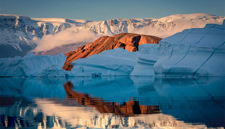忘却时间和全世界,在世界上最美的冰山面前深深陶醉吧。我们会乘坐冲锋艇,在【红岛】周围巡航,蓝白的冰山在暗红色的沉积岩的映衬下越发冷艳得追魂摄魄。