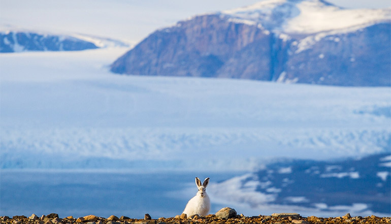 今早起来,先跟路过船外的巨大冰山道一声早安吧!这些仿佛来自外星的庞然大物有的能超过100米高并超过1公里长,此刻却抛锚在只有约400米深的峡湾里。接着,我们会在南角附近登陆,上岸欣赏【霍尔贝特干峡湾】的美景,有机会看到一只只洁白滚圆如汤圆的北极兔呢,夏末秋初,北极周边并没有我们想象中那般荒凉,植被资源相对比较丰富,北极兔们自然也就开启了加餐模式。苔藓、浆果、花朵和岸边海藻都是它们爱吃的东西。