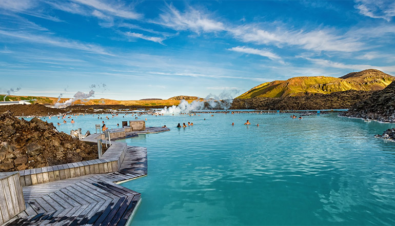 因拥有众多温泉、间歇泉而被发现它的斯堪的纳维亚人命名为“冒烟的湾岸”的雷克雅未克。同时又因为很少有工厂,几乎无污染,又被称为“无烟城市”,有无之间,便是这座澄澈得像一块玻璃的冰岛都城。可直接前往【蓝湖温泉】,浸入这片被云雾缭绕的蓝色,静静享受它温暖的拥抱,之前积攒的疲倦顿时被一扫而光。