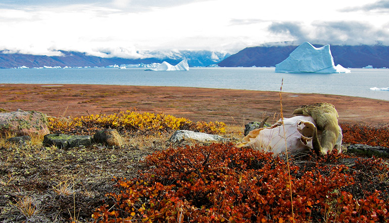 造访【丹麦岛】计划定在下午,我们在那里登陆后,会去寻访因纽特人约在200年前留下的遗址:由石头围成的圆形帐篷环代表他们夏季的居所,而冬季的居所则安置于接近海岸角的地方。这些遗址早已失去了主人,但大部分都被完整的保留了下来,至今仍可以看到明显的出入口、防熊的储肉架和墓地遗迹。