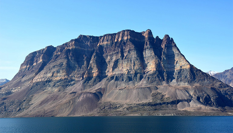早晨时分,我们进入【游艇会峡湾】。在峡湾的南岸登陆徒步,从这面眺望对岸,可将贝采利乌斯男爵山脉的条纹斜坡看得很清晰,至小湖边,则很有可能看到麝牛、北极兔和岩雷鸟。
