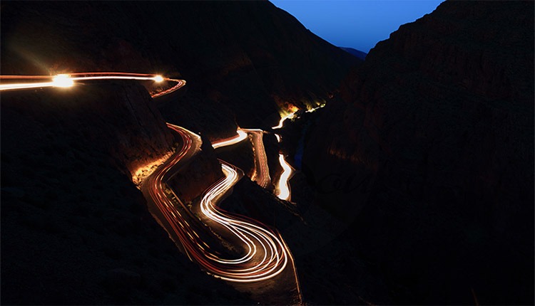 马拉喀什到撒哈拉有好几百公里的距离。我们从风清气和的皇城古都出发,翻过白雪皑皑的阿特拉斯山,穿越无边戈壁,才能抵达沙漠边缘。大约夜晚时,可以进入达戴斯峡谷(Gorges Dades),气温瞬间降至个位数,沙漠的昼夜温差分分钟感受无疑。
