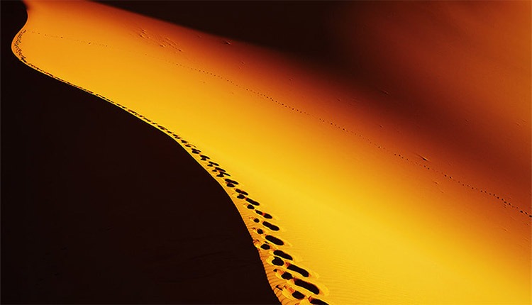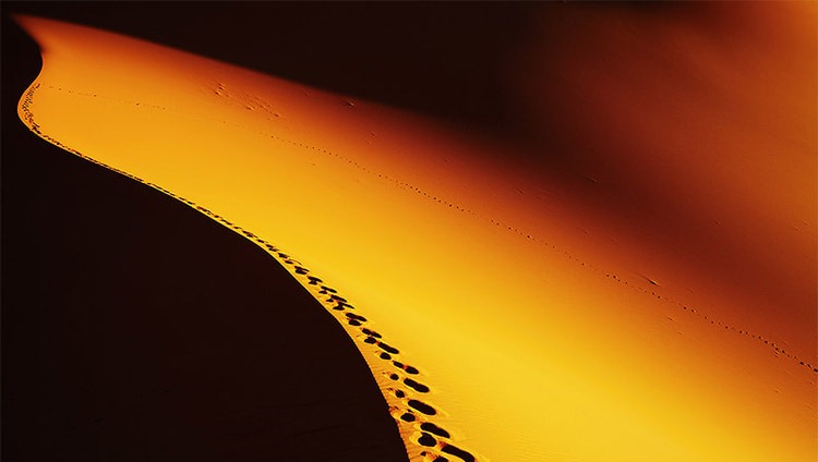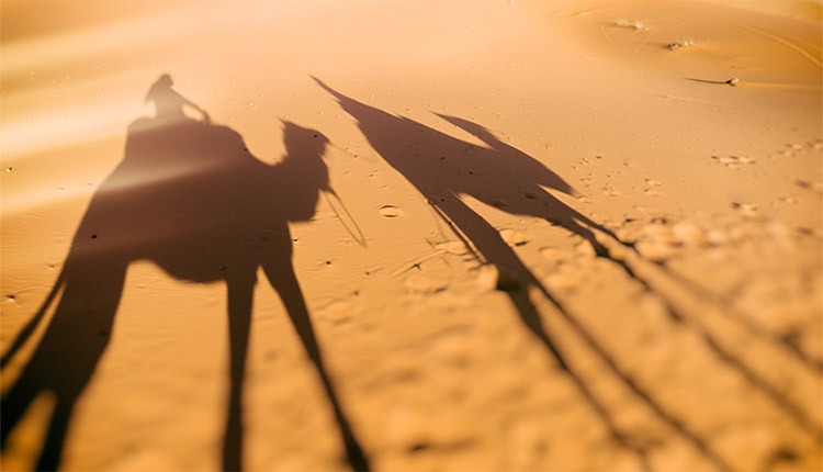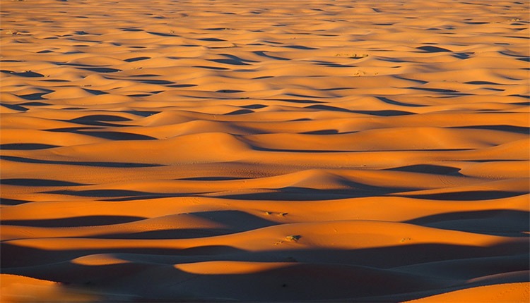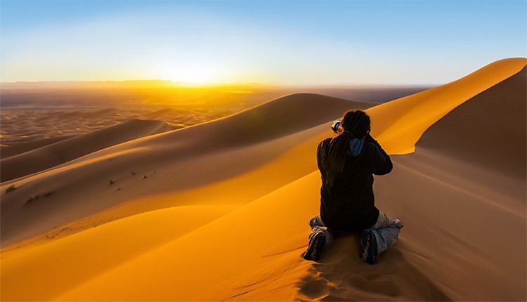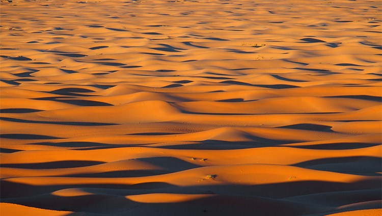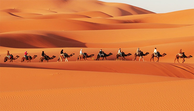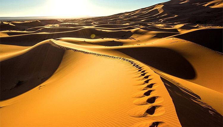不知不觉地行驶中,就到了梅尔祖卡沙丘之巅,抵达到了大自然最放肆最狂野最残酷的一面,“到撒哈拉去”的执念在此生根,迅速蓬勃。烈日把天空烧灼成白色,骆驼的睫毛挂着沙粒,深一脚浅一脚地踩在松软的沙脊上,在热气蒸腾摇曳的绿洲缓缓行进。