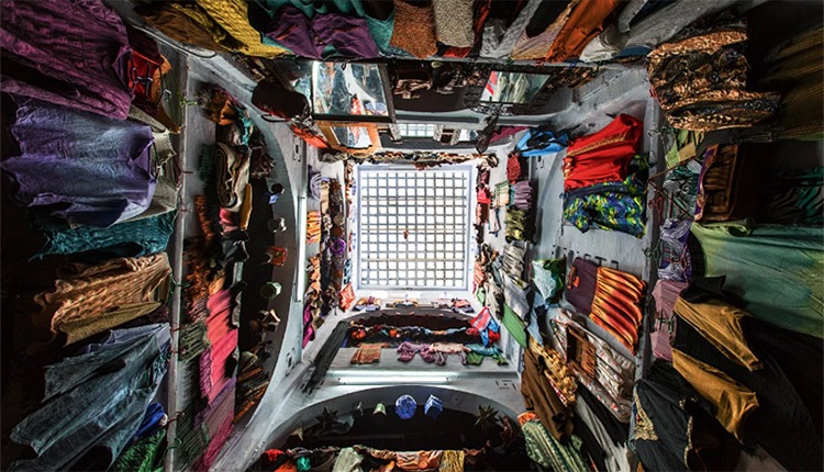 村落依山而建,远远望去好似黄土砌就的巨型城堡,山脚下也有高墙环绕,起到防卫作用。进入村寨中,羊肠小道曲曲折折,通向山顶的公用谷仓。站在山顶,雪山横亘西北,大漠铺向东南,蓝天黄土,点缀以白云绿树,一派要素齐全的北非风光就在眼前铺陈。