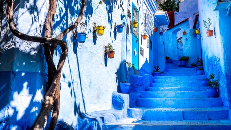 没有舍夫沙万的摩洛哥,终究是不完美的。第五天,就来全世界最蓝的小镇舍夫沙万吧。深蓝、湖蓝、藏蓝、青蓝、钴蓝、天蓝、火药蓝,一望无际地中海的深蓝与天空的浅蓝交汇在了一起,将这座山间小镇打扮成无比奇妙的童话世界。只是穿过紧凑的麦地那老城,欣赏街道上绚丽的蓝白房屋,就已觉得在童话里呆了整整一天。