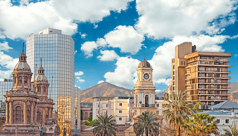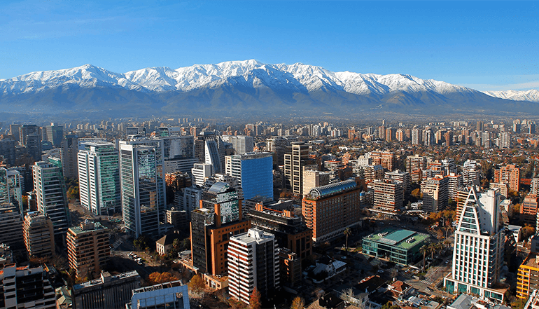 搭乘国际航班前往智利首都圣地亚哥,圣地亚哥是智利最大的城市拥有国际知名的葡萄园和安第斯滑雪胜地。