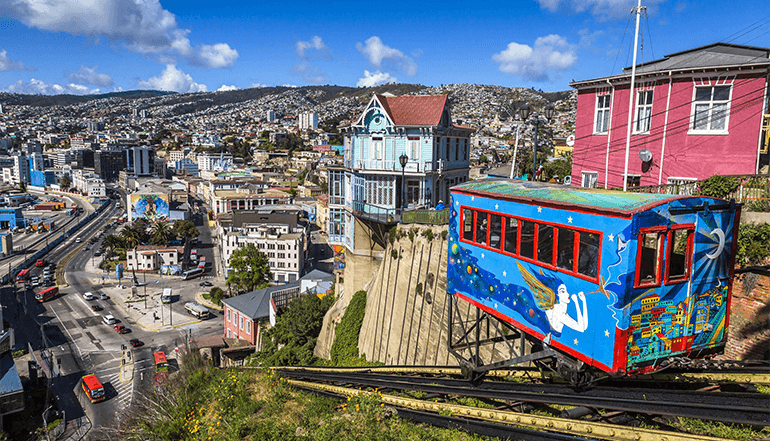 酒店早餐后前往智利国会所在地,瓦尔帕莱索市。瓦尔帕莱索是被联合国教课文组织授予“人类文化遗产”的古老城市。游客被其建筑、交通、色彩斑斓的涂鸦和当地人的港口城市生活所深深吸引。这里同时也诞生了众多诗人、作家和艺术家。
