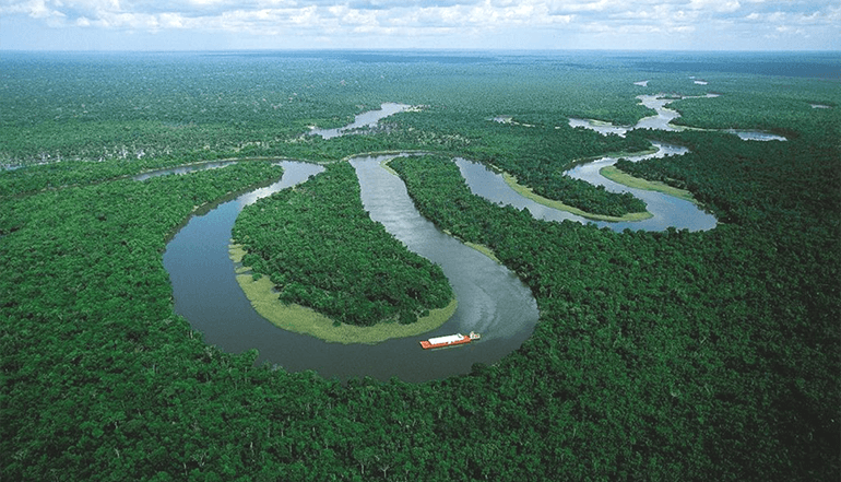 来到玛瑙斯,乘坐游船顺水而下游览亚马逊河,沿途欣赏玛瑙斯两岸的风貌,不同颜色的内格罗河与索利芒斯河奔腾到此,形成黑白色河水并排长约 6 公里,互不相犯、黑白分明之奇景。