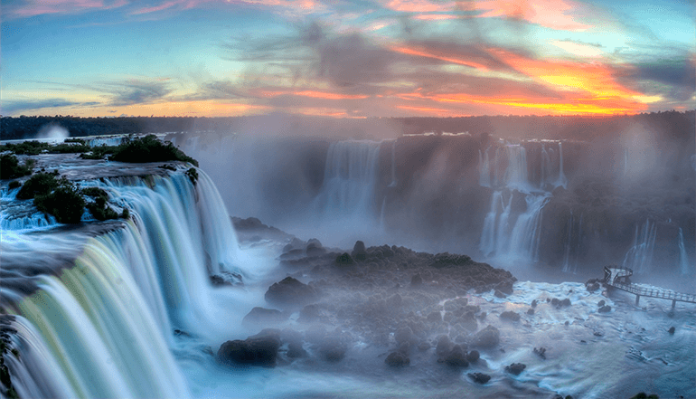 终于来到了伊瓜苏瀑布前,即使没有黎耀辉与何宝荣,这里的场景依然让人动容。进入栈道,置身于飞流直下三千尺的宏伟景观之中。沿曲折小径,观赏最壮观的天然奇景,领略 275 道瀑布万马奔腾气势和惊心动魄的感受,倾听雷神咆哮于魔鬼咽喉!
