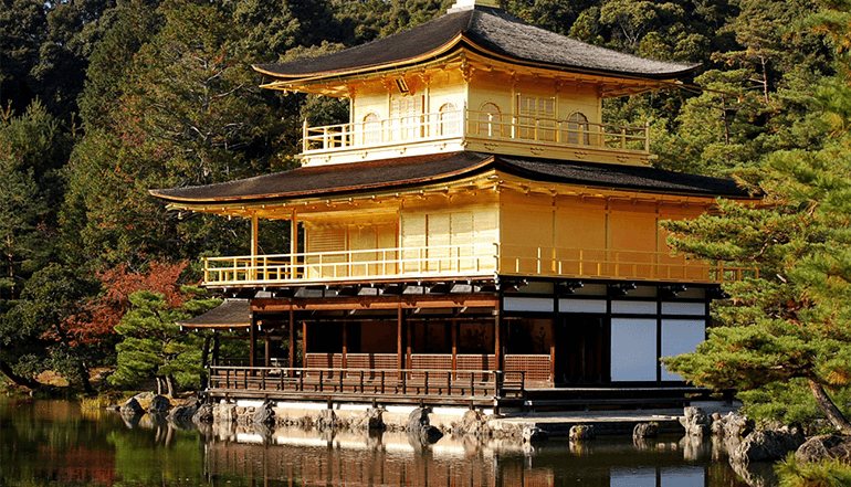 下午参观金阁寺,是一座位于京都、最早完成于 1397年(应永四年)的日本古刹,除了是知名的观光旅游景点之外,也是被日本政府指定为国宝,并于 1994年被联合国教科文组织指定为世界文化遗产的重要历史建筑。