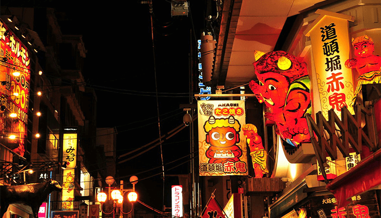 之后在 “吃趴下 ”饮食文化的发源地,道顿堀美食界大快朵颐,各种大大小小的饭店和酒吧间,简直多得数不清。五颜六色的霓虹招牌、别出心裁的广告和装饰豪华的门面,呈现出一派灯红酒绿的繁荣景象。