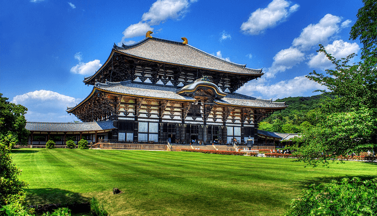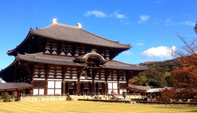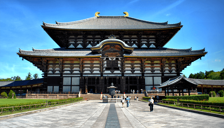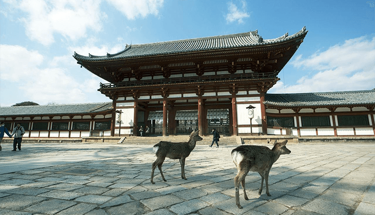 之后拜访有1200多年历史的所以称作东大寺。公元728年由信奉佛教的圣武天皇下令建造,为现今世上最大木造结构建筑。雄伟非凡的建筑结构和法相庄严的佛像,让世界各地观光客赞叹不已。