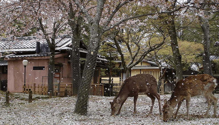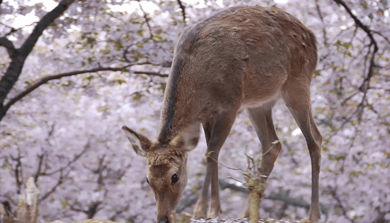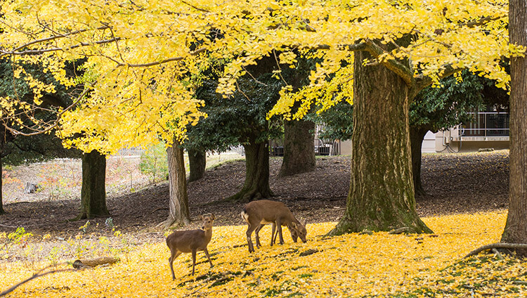行程的第三日来到奈良,在奈良鹿公园漫步于鹿群中。奈良公园最引人注目的是梅花鹿,其中有1200头鹿生活在这里,这些鹿大多温顺而讨人喜爱。