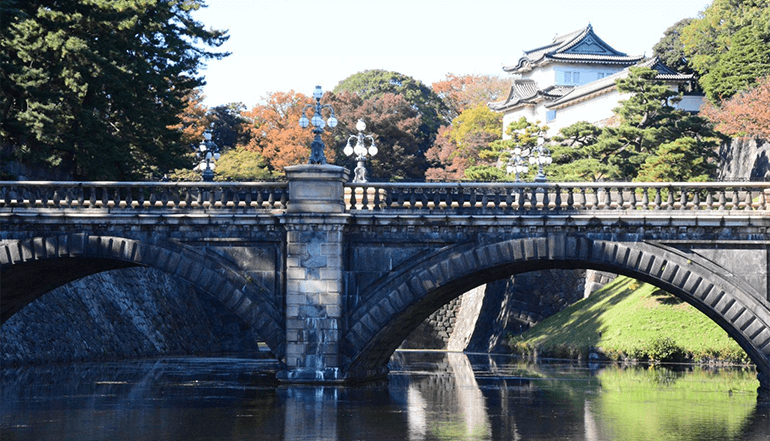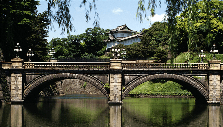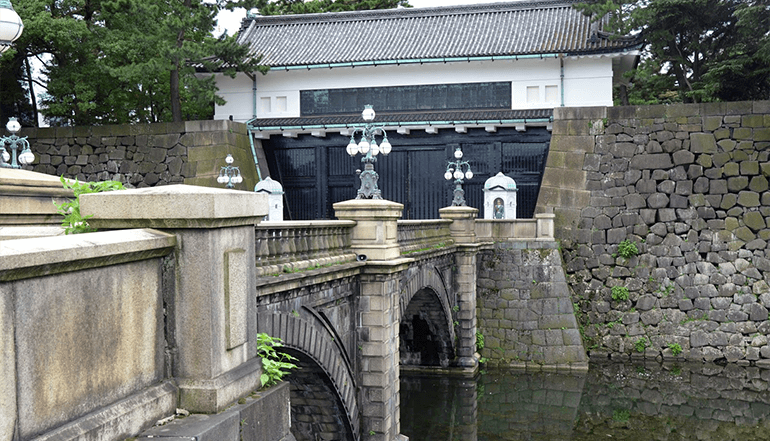皇居外苑、二重桥皇居外苑,是日本国民公园的一部分。二重桥下的护城河,水平如镜,宫宇苍垂柳倒映其中,显得格外优美,被公认为皇居最美之地。