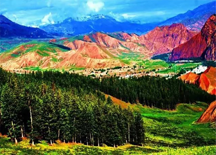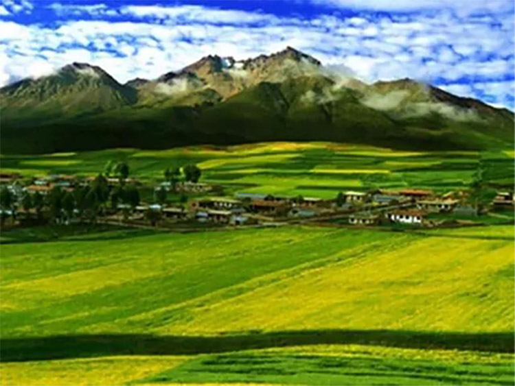 卓尔有泛着青红色泽的山体,翠滴滴的青稞,块块斑斓的花田,4000米的顶端,还有皑皑积雪,一览众山小的视野。