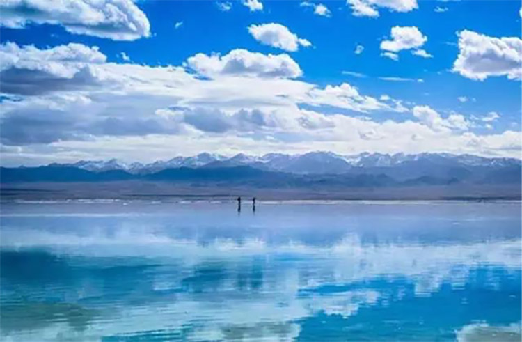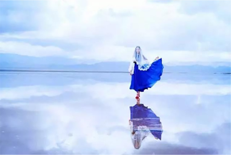 白盐结晶而成的湖面,站在上面如站在天空的镜子里,除了你,便只剩了天地之间的无边辽阔无限延生。