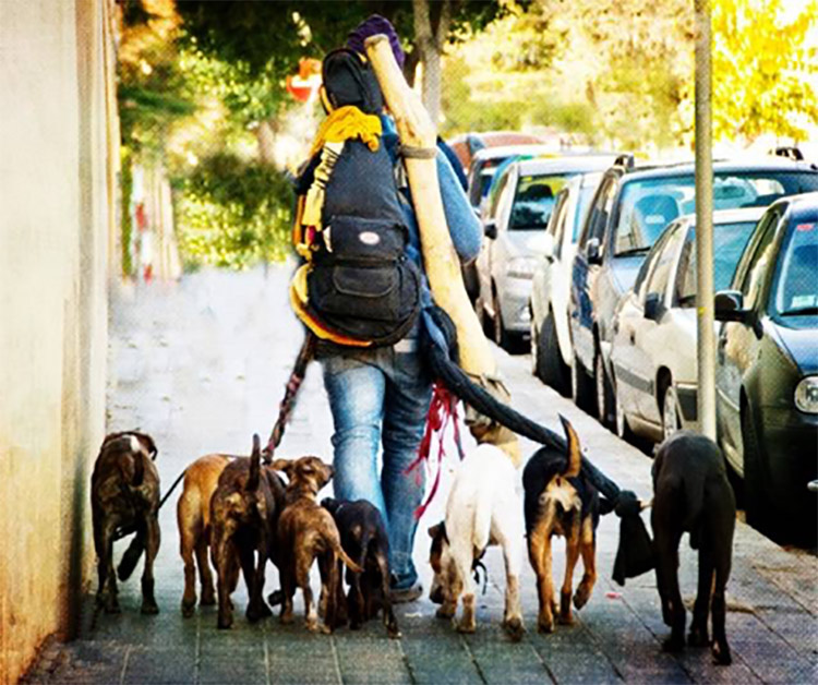 一次性遛九只或更多狗是违法行为。2013年新出台的《遛狗限令》要求遛狗者必须获得许可证,一次性遛狗数量最多为八只。在商业步行街开车带狗的话,车辆需要进行检查,批准后方可载狗出行。从此专业遛狗族得小心谨慎,甚至忍痛割爱了!
